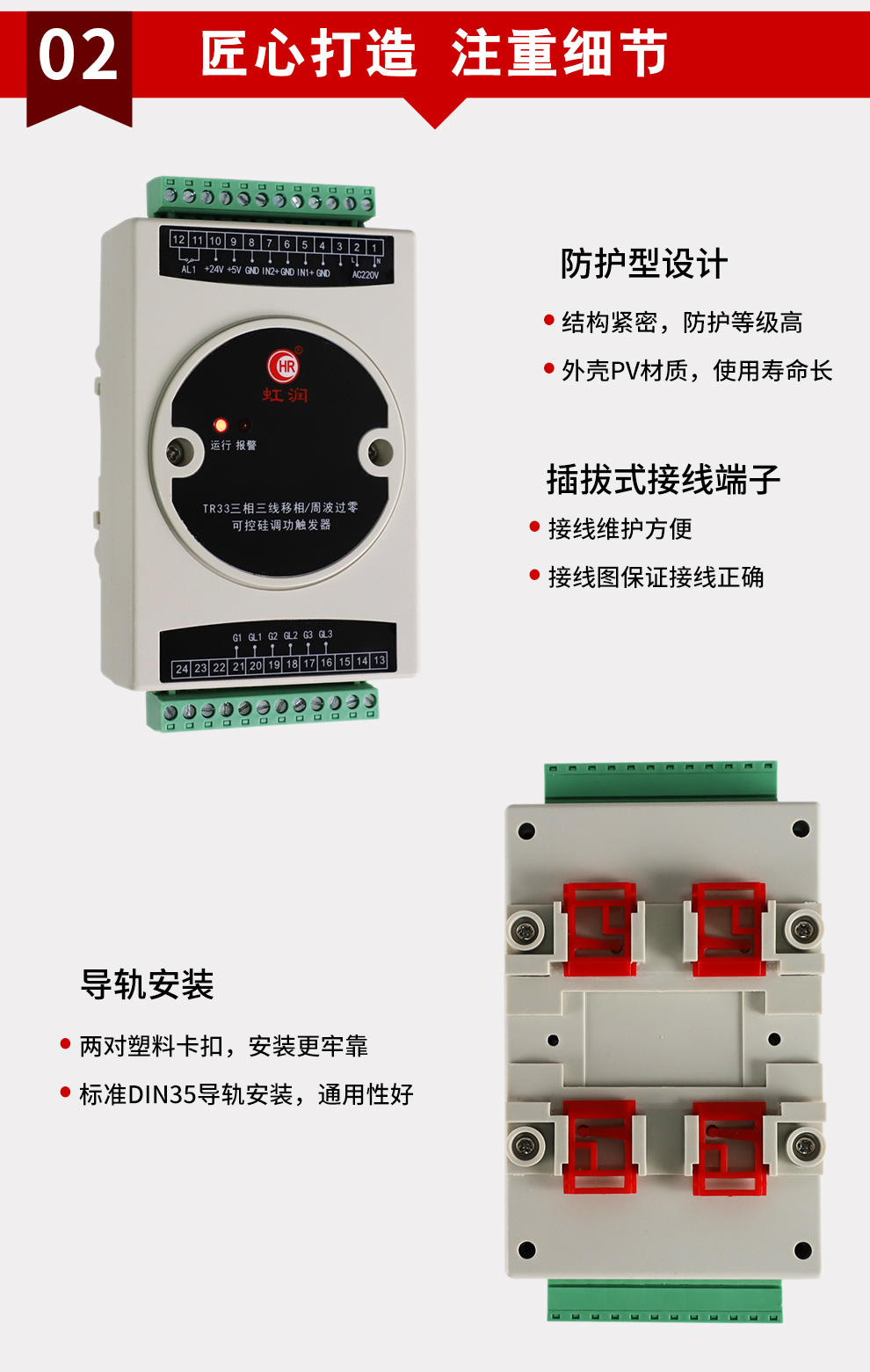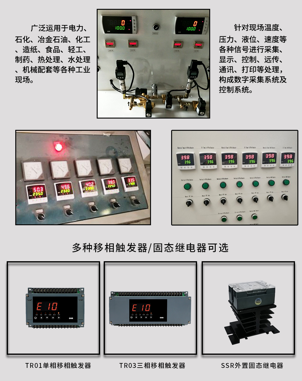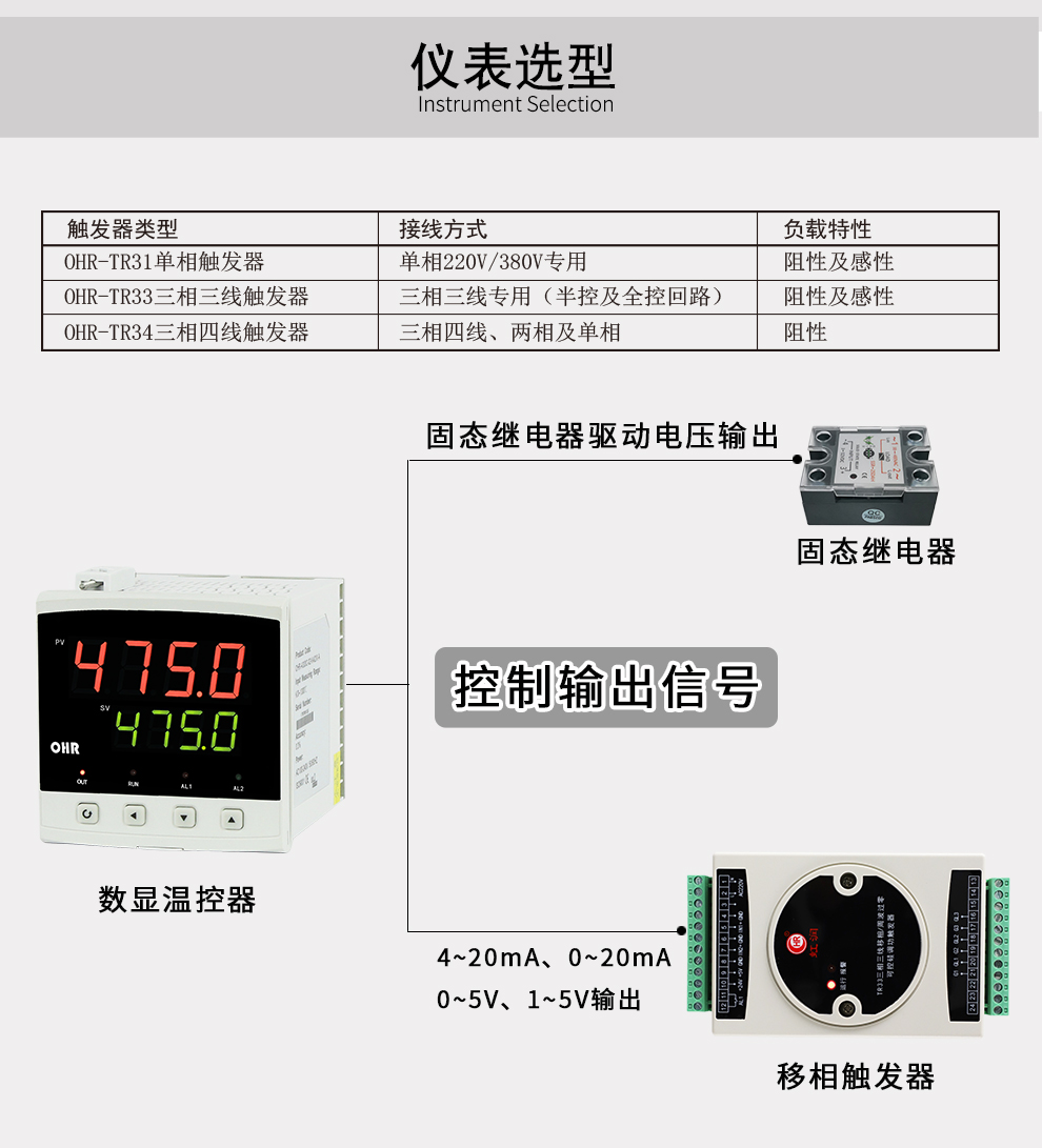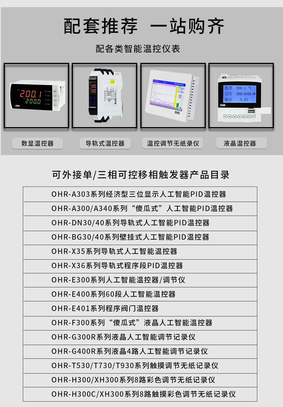 OHR-TR30系列移相觸發(fā)器是應用了單片機技術的智能化單/三相移相觸發(fā)器,功能強大且可靠性高,能適應各種 電阻絲、硅碳棒及負載采用變壓器降壓的硅鉬棒、鎢絲等各種類型工業(yè)電爐,也可用于電機軟啟動的控制。