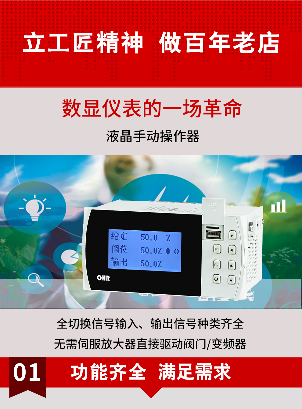 OHR-G500/G500R系列液晶手動(dòng)操作器/記錄儀適合作為DCS系統(tǒng)回路調(diào)節(jié)控制輸出和智能調(diào)節(jié)器控制輸出的備用操作器使用,能接受與系統(tǒng)同步的給定信號(hào)和反饋信號(hào),根據(jù)給定信號(hào)輸出相應(yīng)的控制量.