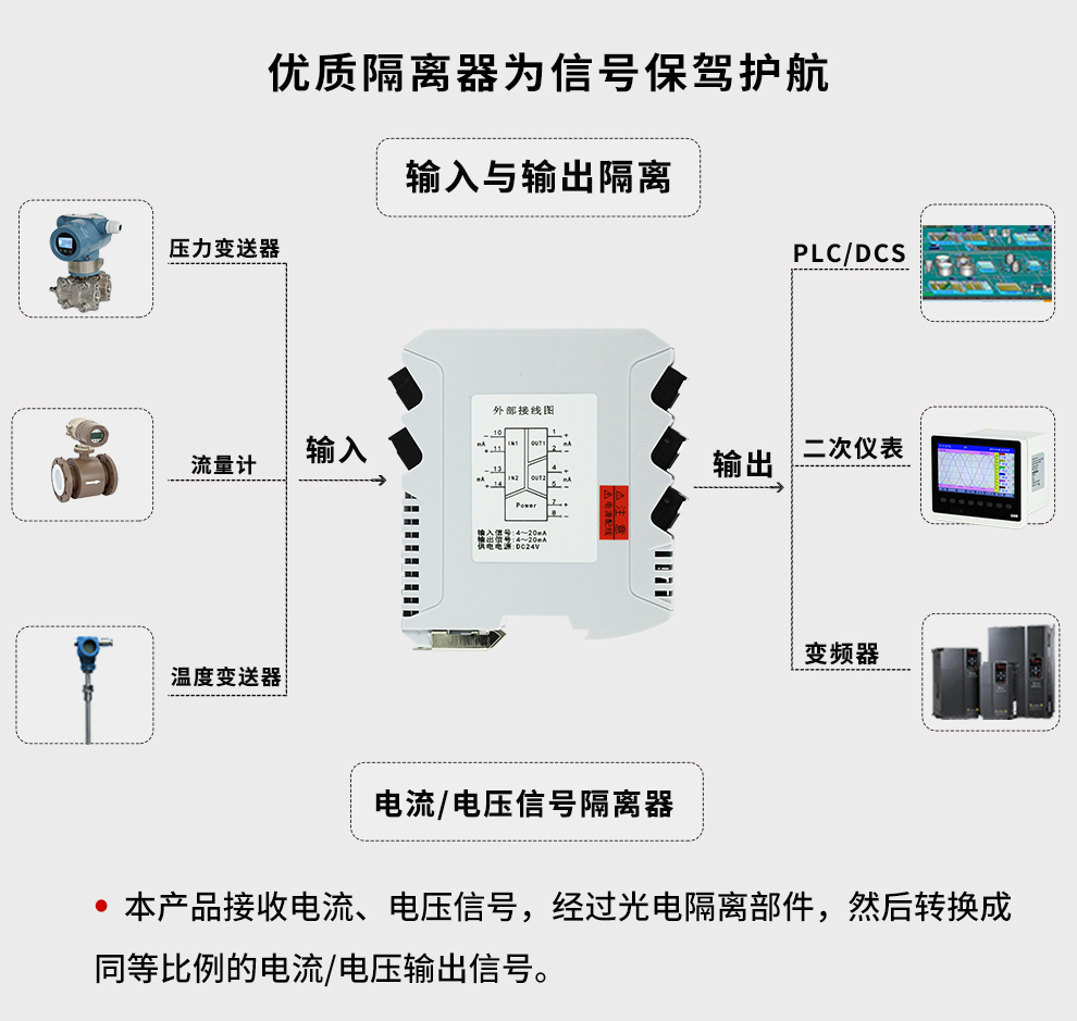 虹潤公司是專業(yè)生產(chǎn)隔離器的國家專精特新“小巨人”企業(yè)。生產(chǎn)的智能信號隔離器涵蓋電流電壓變送器、溫度變送器、配電器、頻率轉(zhuǎn)換器、開關(guān)量轉(zhuǎn)換器及通訊轉(zhuǎn)換器等多種產(chǎn)品類型。產(chǎn)品獲得信號隔離器、一種二端子模塊、無源信號隔離器等3項(xiàng)國家發(fā)明專利,主持起草現(xiàn)場設(shè)備工具(FDT)接口規(guī)范、工業(yè)過程測量和控制系統(tǒng)用隔離式安全柵、工業(yè)過程測量和控制系統(tǒng)用配電器等3項(xiàng)國家標(biāo)準(zhǔn),以及通信系統(tǒng)多通道數(shù)據(jù)采集控制終端規(guī)范軍用標(biāo)準(zhǔn),參與國際5G標(biāo)準(zhǔn)制定,取得導(dǎo)軌式智能隔離器、頻率轉(zhuǎn)換器等3項(xiàng)相關(guān)軟件著作權(quán)。產(chǎn)品廣泛電力、冶金、工業(yè)電爐、變電站、高壓電機(jī)房等需要電隔離的工業(yè)自動(dòng)化控制系統(tǒng)。