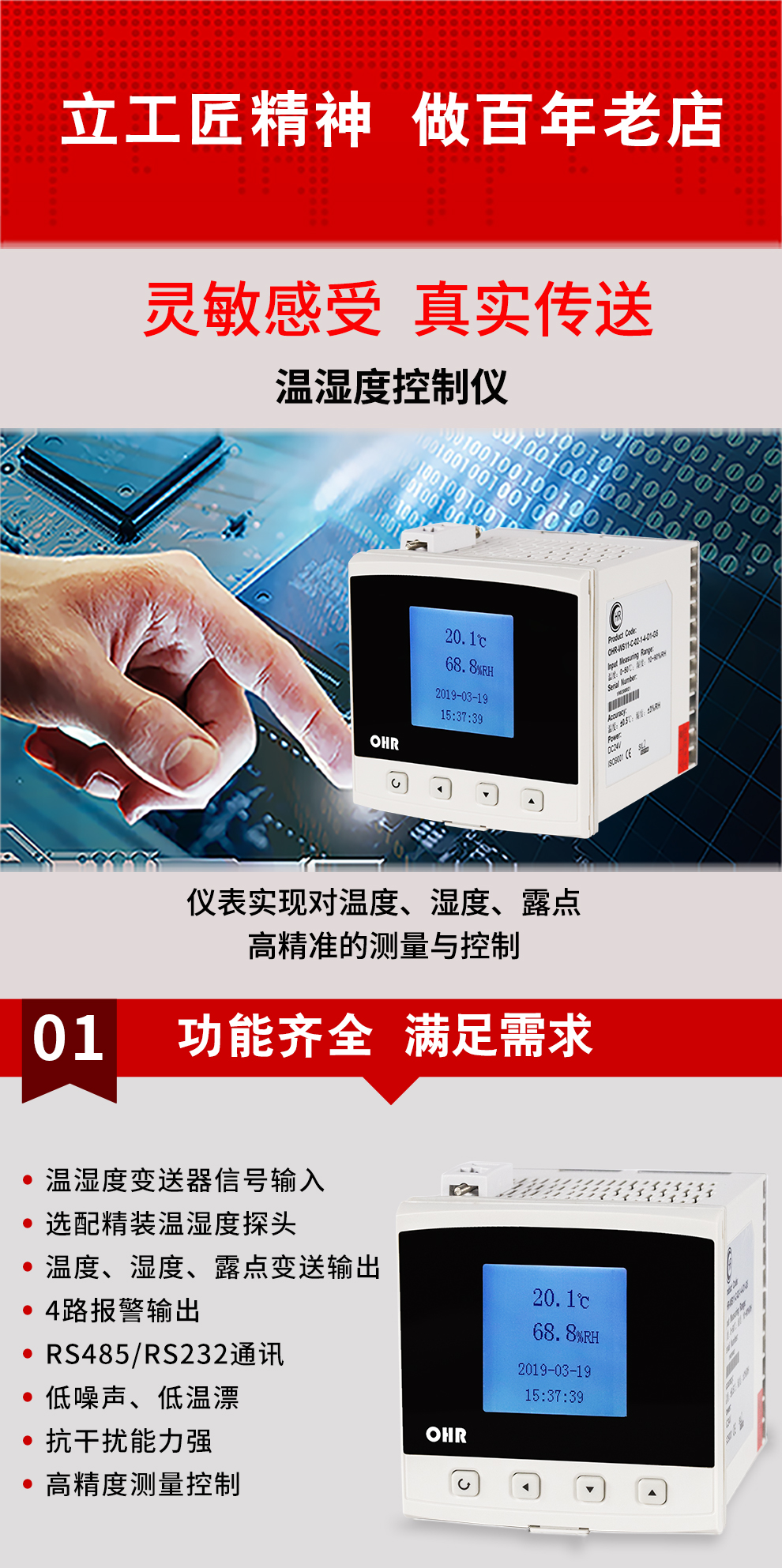 OHR-WS10系列溫濕度控制儀以先進的32位ARM處理器為核心,采用進口高性能溫濕度傳感器,可同時對被測環(huán)境的溫度、濕度進行測量和控制,并可通過溫、濕度計算出露點。它具有精度高、穩(wěn)定性強、響應速度快等特點,適用于通訊機房、辦公室、醫(yī)院、檔案館、博物館、賓館、樓宇自控等場所的溫濕度測量。
