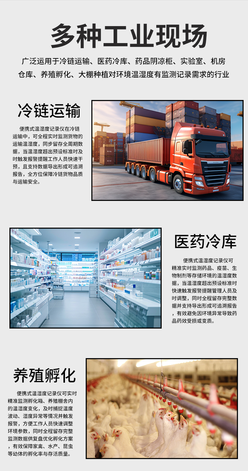虹潤(rùn)公司是專業(yè)生產(chǎn)環(huán)境監(jiān)測(cè)儀表的國家專精特新“小巨人”企業(yè)。生產(chǎn)的便攜式溫濕度記錄儀,具有溫濕度記錄與轉(zhuǎn)存,手機(jī)充電電池,磁吸或壁掛安裝,故障報(bào)警提示,配上位機(jī)軟件等特點(diǎn)。產(chǎn)品獲得一種手持式低功耗溫濕度檢測(cè)儀、無紙記錄儀等2項(xiàng)國家發(fā)明專利,主持起草物聯(lián)網(wǎng)智能溫度儀表通用技術(shù)條件、冷鏈溫度記錄儀等2項(xiàng)國家標(biāo)準(zhǔn),通信系統(tǒng)多通道數(shù)據(jù)采集控制終端規(guī)范軍用標(biāo)準(zhǔn),以及現(xiàn)場(chǎng)設(shè)備集成等5項(xiàng)智能制造國家標(biāo)準(zhǔn),參與國際5G標(biāo)準(zhǔn)制定,取得便攜式溫濕度記錄儀等3項(xiàng)相關(guān)軟件著作權(quán)。產(chǎn)品廣泛應(yīng)用于冷鏈運(yùn)輸、醫(yī)藥冷庫、藥品陰涼柜、實(shí)驗(yàn)室、機(jī)房倉庫、養(yǎng)殖孵化、大棚種植等諸多領(lǐng)域。