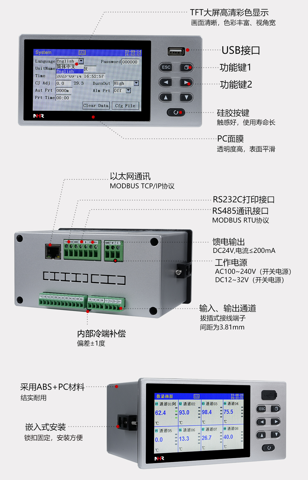 NHR-7100T系列彩色無紙記錄儀是一款體積小巧、功能強大的無紙記錄儀。采用大屏高清真彩液晶屏為顯示 窗口,使產(chǎn)品具有顯示清晰、色彩豐富等特點。內(nèi)核采用高速、高性能32位ARM微處理器,操作簡便、響應(yīng)快 ,記錄存儲與控制功能強大,是一款功能齊全、操作方便、精確可靠、高性價比的產(chǎn)品,在各行各業(yè)中得到廣泛 應(yīng)用。
