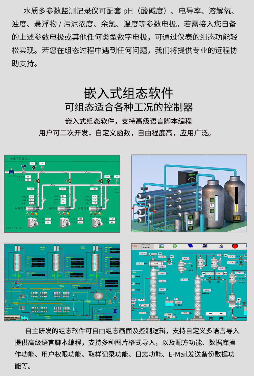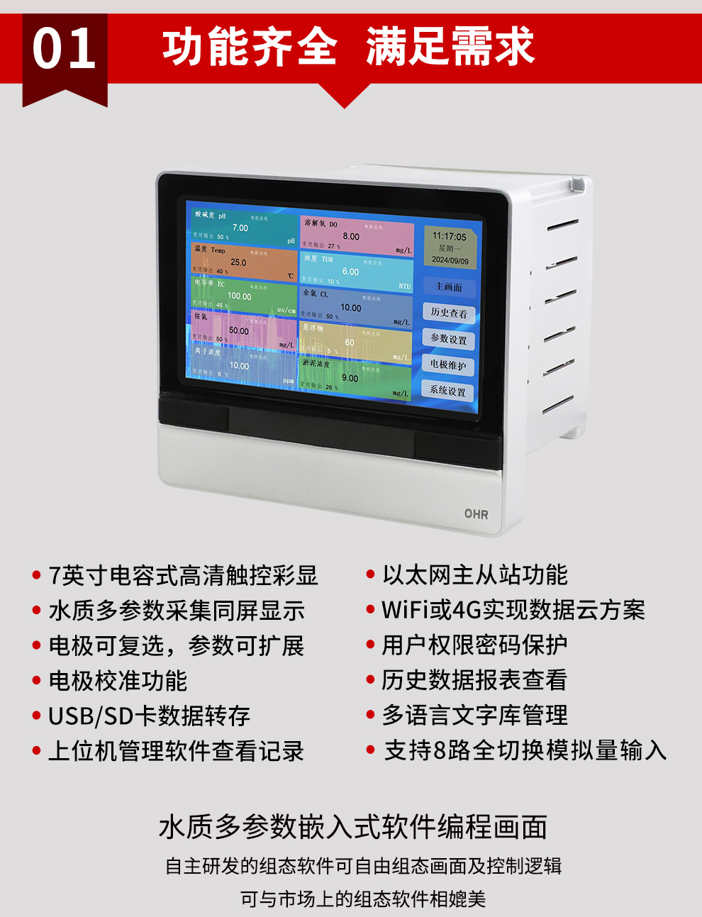 OHR-SZ80系列水質(zhì)多參數(shù)監(jiān)測記錄儀是一款多參數(shù)可組合的水質(zhì)監(jiān)測控制器,可通過RS485通訊采集現(xiàn)場pH(酸堿度)、電導(dǎo)率、溶解氧、濁度、污泥、余氯、溫度等水質(zhì)參數(shù),產(chǎn)品可實(shí)現(xiàn)水質(zhì)電極的數(shù)據(jù)采集、記錄分析、變送、報(bào)警控制、以太網(wǎng)通訊、WiFi或4G實(shí)現(xiàn)數(shù)據(jù)云方案。