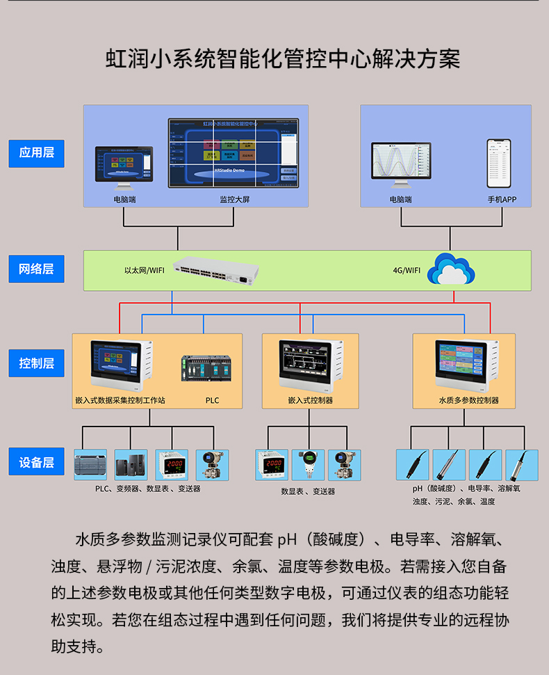 虹潤公司是專業(yè)生產(chǎn)水質(zhì)分析儀的國家專精特新“小巨人”企業(yè)。生產(chǎn)的水質(zhì)多參數(shù)監(jiān)測記錄儀,具有多參數(shù)采集同屏顯示,數(shù)據(jù)記錄與轉(zhuǎn)存,支持WiFi或4G實(shí)現(xiàn)數(shù)據(jù)云方案,內(nèi)置與外配組態(tài)軟件等特點(diǎn)。產(chǎn)品獲得一種適應(yīng)性強(qiáng)PH控制儀、嵌入式數(shù)據(jù)采集工作站、數(shù)據(jù)采集控制工作站、無紙記錄儀、智能化控制器等5項(xiàng)國家發(fā)明專利;主持起草通信系統(tǒng)多通道數(shù)據(jù)采集控制終端規(guī)范軍用標(biāo)準(zhǔn),物聯(lián)網(wǎng)智能記錄儀表通用技術(shù)條件國家標(biāo)準(zhǔn),以及現(xiàn)場設(shè)備集成等5項(xiàng)智能制造國家標(biāo)準(zhǔn),參與國際5G標(biāo)準(zhǔn)制定;取得PH無紙記錄儀等7項(xiàng)相關(guān)軟件著作權(quán)。產(chǎn)品廣泛應(yīng)用于實(shí)驗(yàn)室、水處理、環(huán)境監(jiān)測、食品、制藥、農(nóng)業(yè)、工業(yè)流程控制等諸多領(lǐng)域。