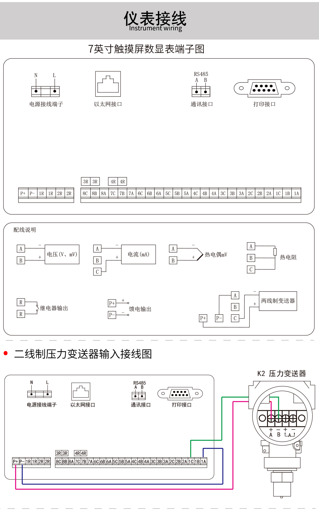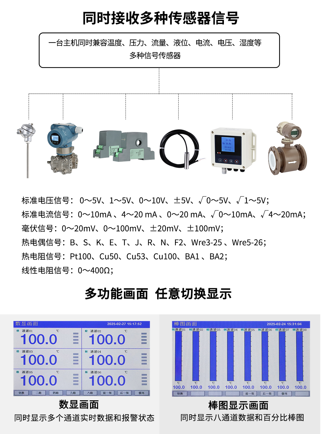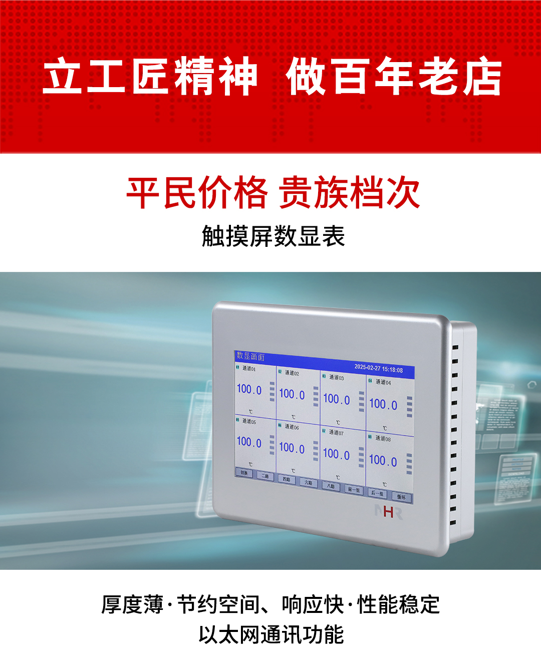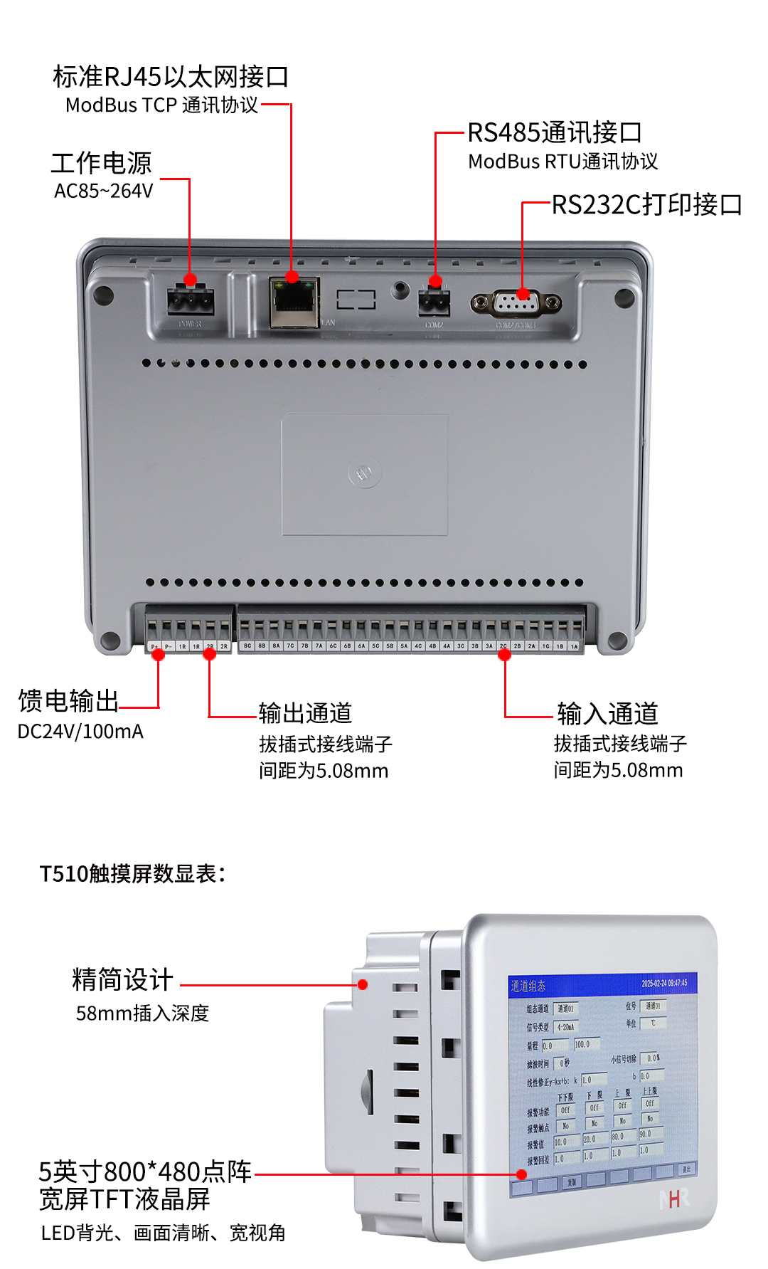 NHR系列觸摸屏數(shù)顯表采用新型大規(guī)模集成電路,對輸入、輸出、電源、信號采取可靠保護和強抗干擾設(shè)計。4路萬能信號輸入(可組態(tài)選擇輸入:標準電壓、標準電流、熱電偶、熱電阻、毫伏等)??蓭?路報警輸出,1個饋電輸出,RS485通訊接口,以太網(wǎng)接口,微型打印機接口;具有強大的顯示功能,實時測量顯示,棒圖顯示,報警狀態(tài)顯示,組態(tài)畫面顯示等。