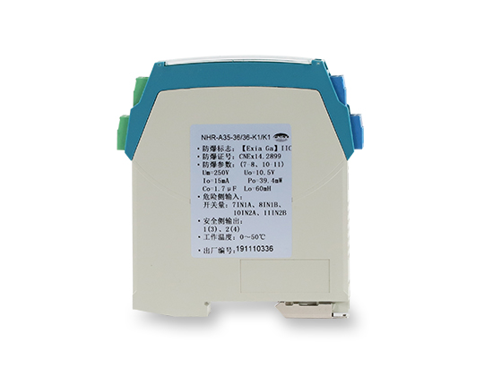 NHR-A35系列開關(guān)量輸入檢測(cè)端隔離柵接受來自危險(xiǎn)區(qū)的開關(guān)或接近開關(guān)輸入,通過安全柵隔離輸出到安全側(cè)的繼電器或晶體管輸出,它具有輸入狀態(tài)檢測(cè)指示,可進(jìn)行正反向控制,該產(chǎn)品需獨(dú)立供電,輸入/輸出/電源三隔離。
