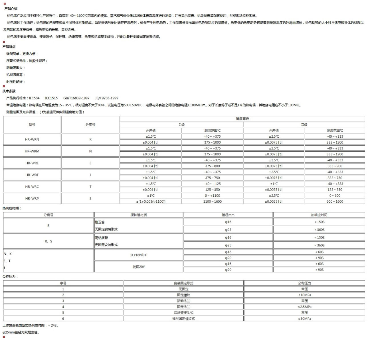 熱電偶(thermocouple)是溫度測(cè)量?jī)x表中常用的測(cè)溫元件,它直接測(cè)量溫度,并把溫度信號(hào)轉(zhuǎn)換成熱電動(dòng)勢(shì)信號(hào),通過(guò)電氣儀表(二次儀表)轉(zhuǎn)換成被測(cè)介質(zhì)的溫度。各種熱電偶的外形常因需要而不相同,但是它們的基本結(jié)構(gòu)卻大致相同,通常由熱電極、絕緣套保護(hù)管和接線盒等主要部分組成,通常和顯示儀表、記錄儀表及電子調(diào)節(jié)器配套使用。