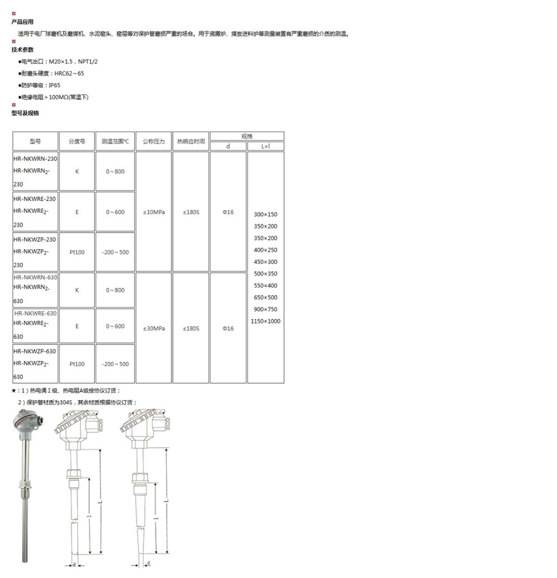 耐磨熱電偶(阻)采用等離子噴漆技術(shù)、高鉻鑄鐵和高溫合金不同材料制成的耐磨保護(hù)管,專(zhuān)門(mén)為高、中、低溫耐磨環(huán)境的測(cè)量場(chǎng)合設(shè)計(jì)制造的,可適用于循環(huán)流化床、沸騰爐、水泥回轉(zhuǎn)窯尾煙室